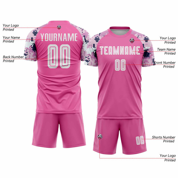 Custom Pink White-Camo Classic Uniform Training Sets Soccer Jersey For Adults/Kids