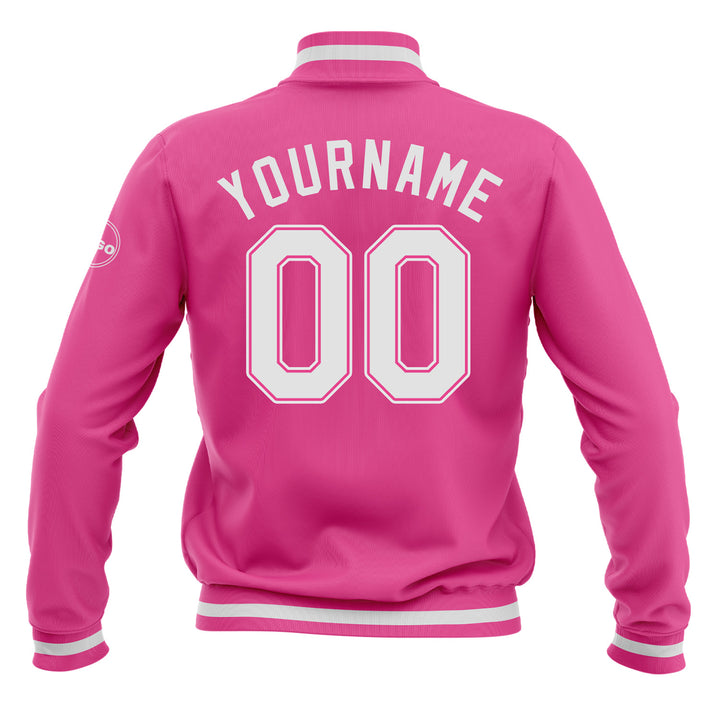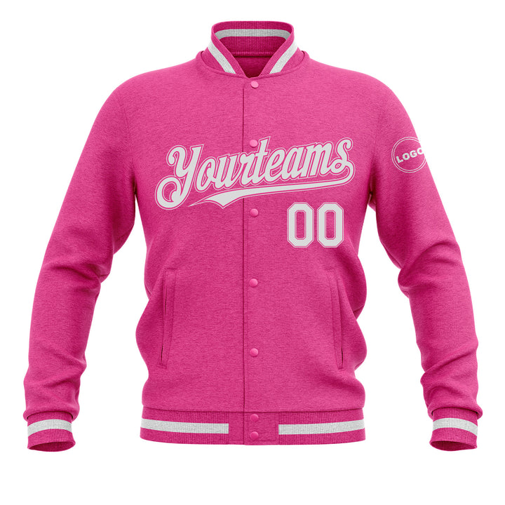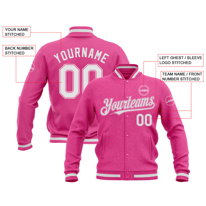 Custom Pink White Classic Style Bomber Varsity Letterman Embroidered Jacket