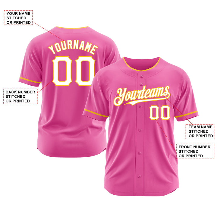 Custom Pink White-Gold Classic Style Authentic Sports Baseball Jersey