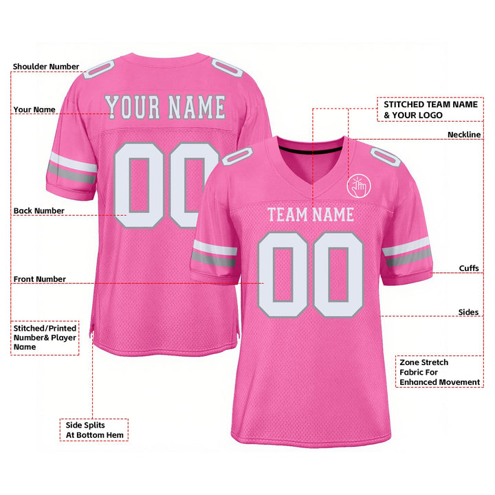 Custom Pink White-Light Gray Mesh Classic Style Authentic Sports Football Jersey
