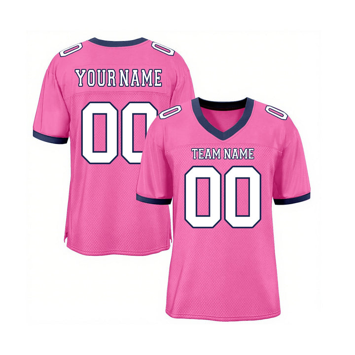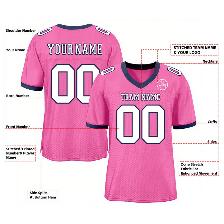 Custom Pink White-Navy Mesh Classic Style Authentic Sports Football Jersey