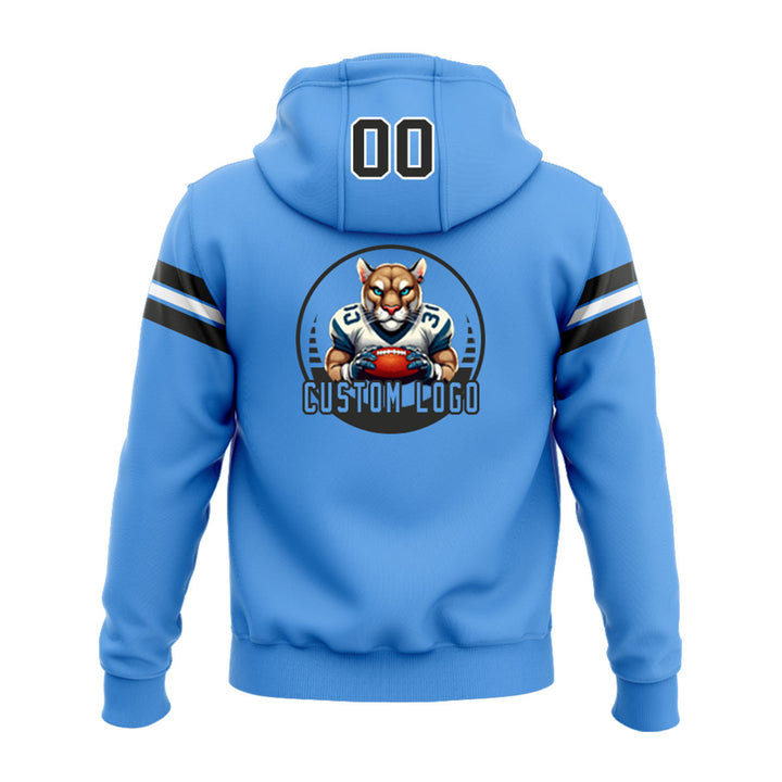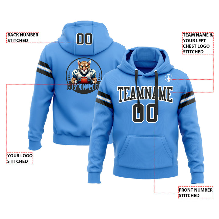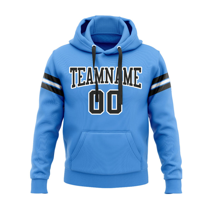 Custom Powder Blue Black-White Personalized Sports Team Embroidered Pullover Hoodie