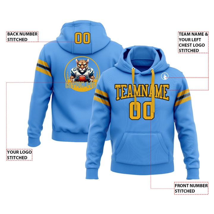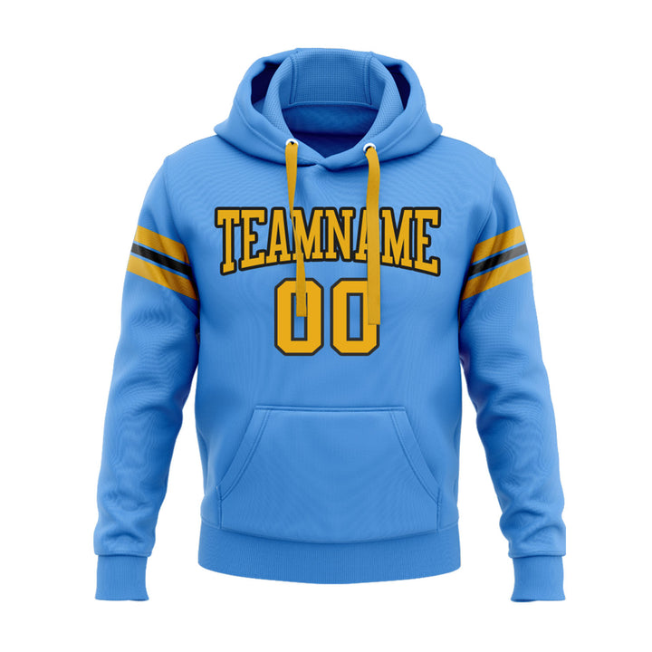 Custom Powder Blue Gold-Black Personalized Sports Team Embroidered Pullover Hoodie