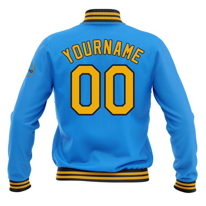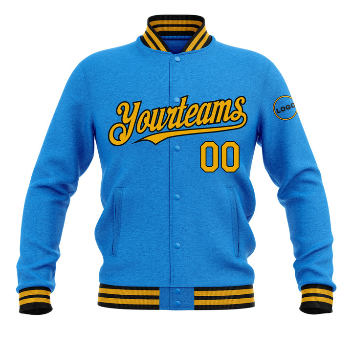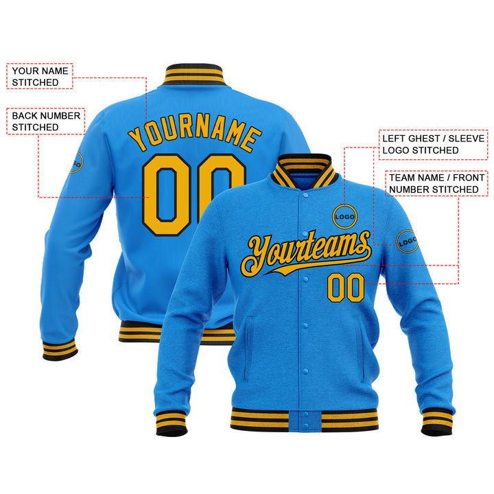 Custom Powder Blue Gold-Navy Classic Style Bomber Varsity Letterman Embroidered Jacket