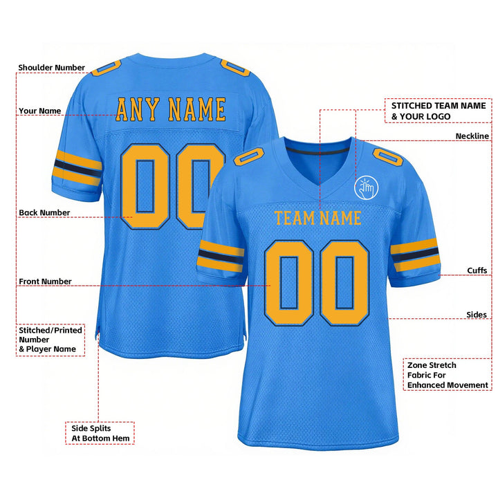 Custom Powder Blue Gold-Navy Mesh Classic Style Authentic Sports Football Jersey