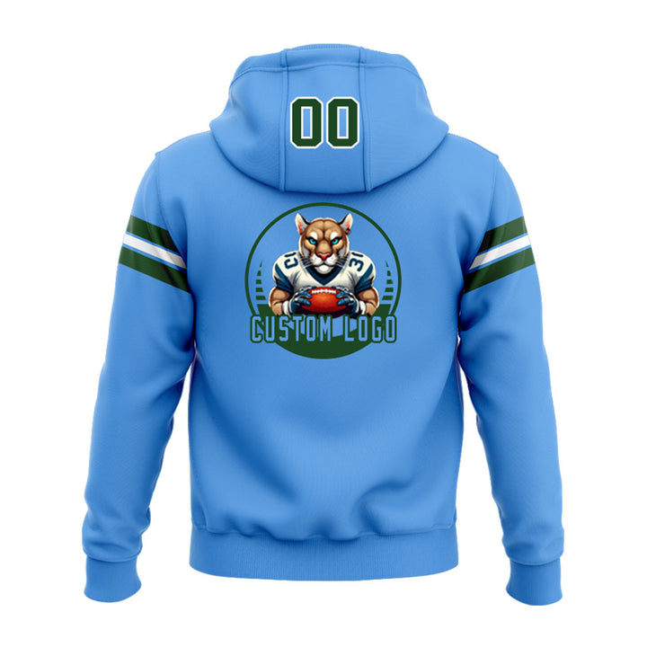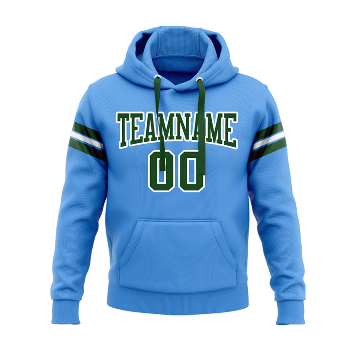 Custom Powder Blue Green-White Personalized Sports Team Embroidered Pullover Hoodie