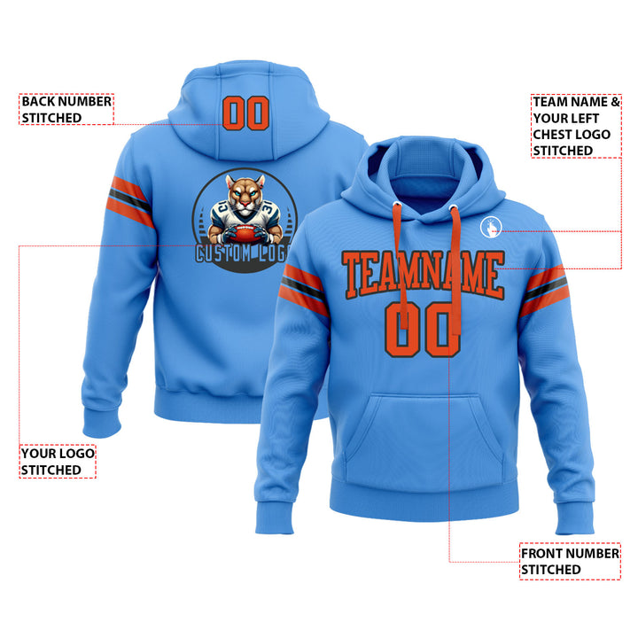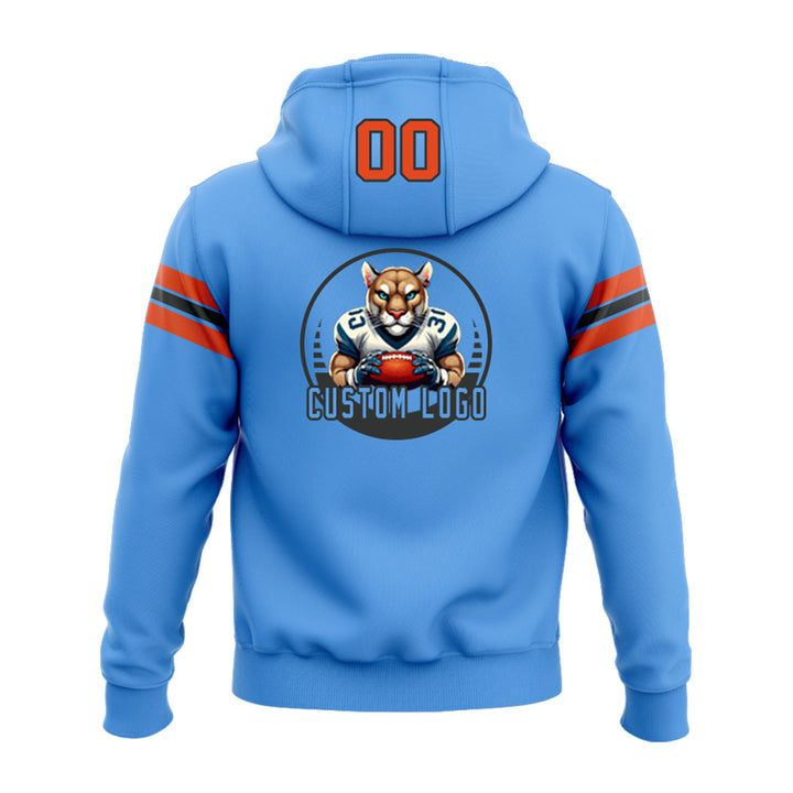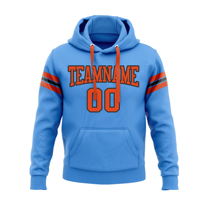Custom Powder Blue Orange-Black Personalized Sports Team Embroidered Pullover Hoodie