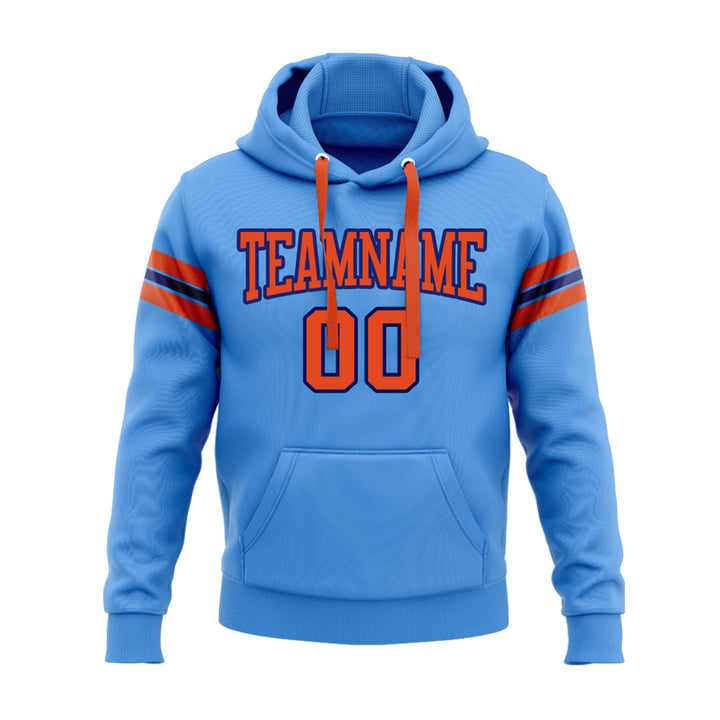 Custom Powder Blue Orange-Royal Personalized Sports Team Embroidered Pullover Hoodie