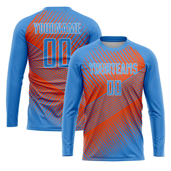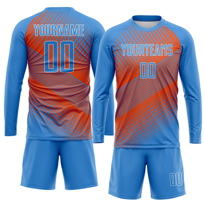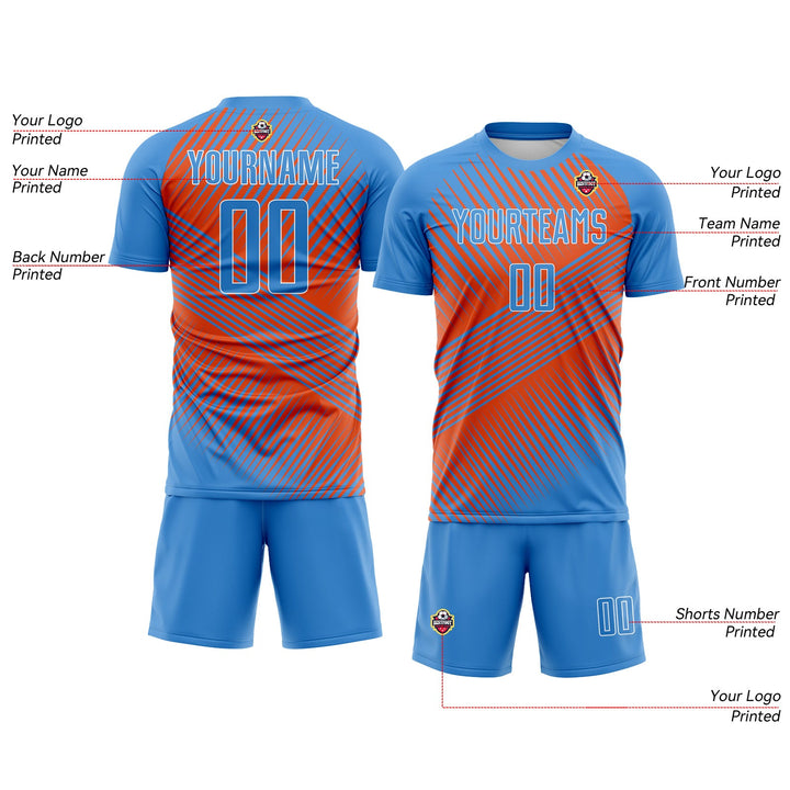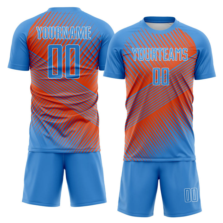 Custom Powder Blue Orange-White Line Classic Uniform Training Sets Soccer Jersey For Adults/Kids
