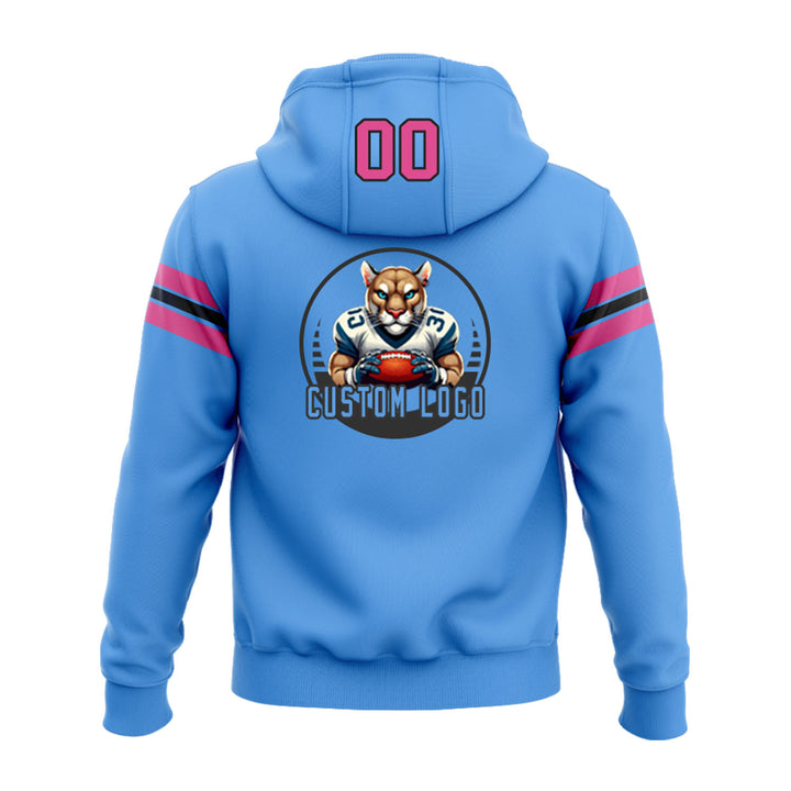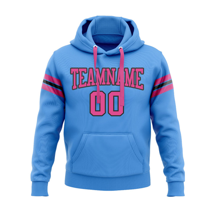 Custom Powder Blue Pink-Black Personalized Sports Team Embroidered Pullover Hoodie