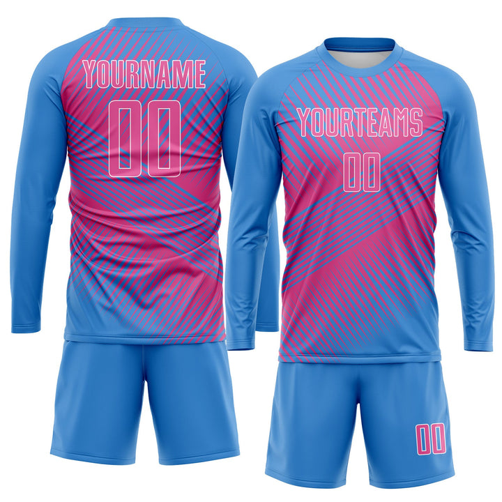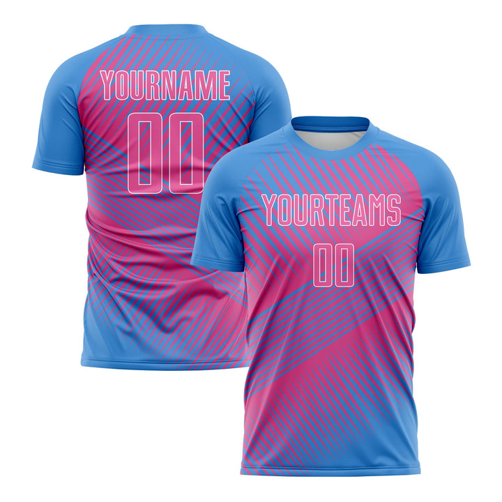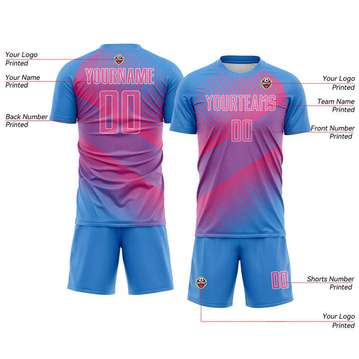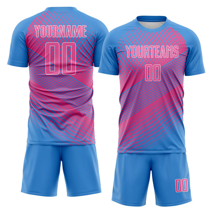 Custom Powder Blue Pink-White Line Classic Uniform Training Sets Soccer Jersey For Adults/Kids