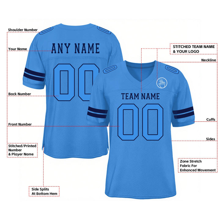Custom Powder Blue Powder Blue-Navy Mesh Classic Style Authentic Sports Football Jersey
