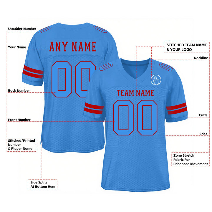 Custom Powder Blue Powder Blue-Red Mesh Classic Style Authentic Sports Football Jersey
