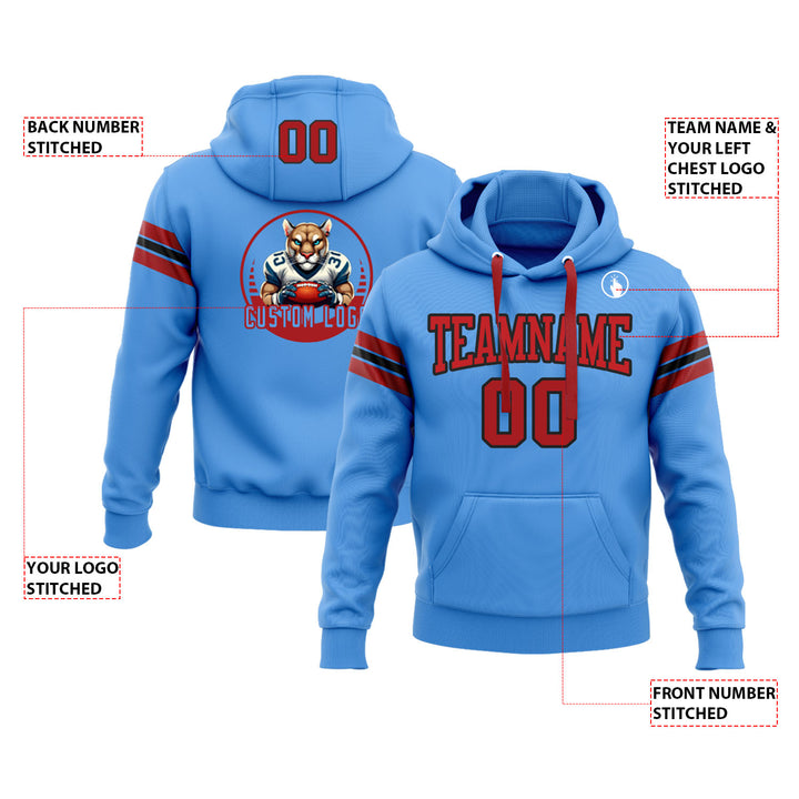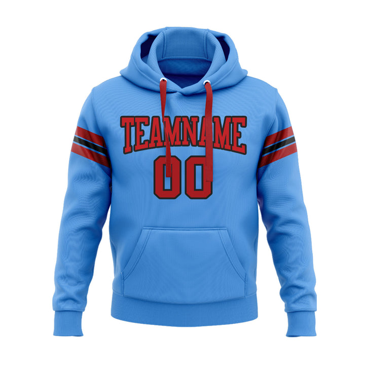 Custom Powder Blue Red-Black Personalized Sports Team Embroidered Pullover Hoodie