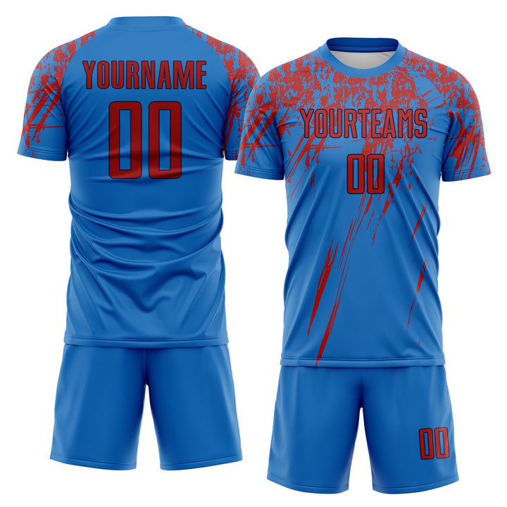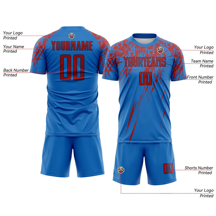 Custom Powder Blue Red-Navy Classic Uniform Training Sets Soccer Jersey For Adults/Kids