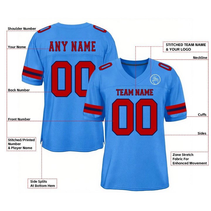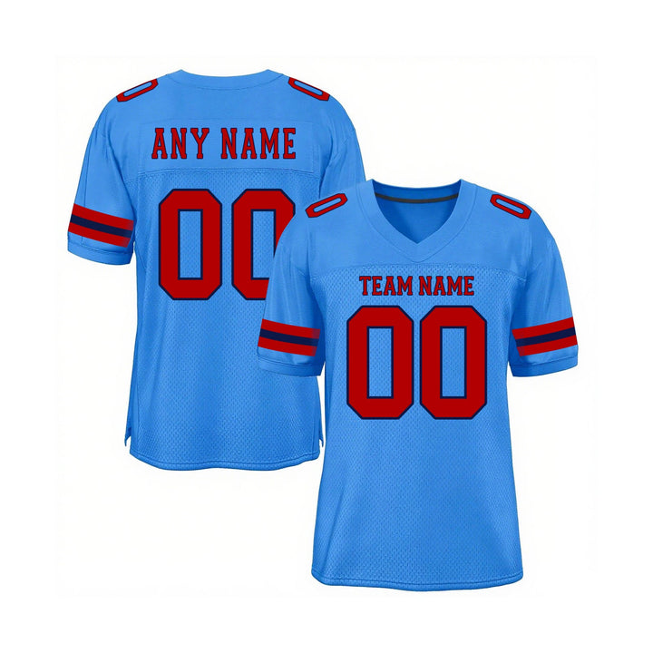 Custom Powder Blue Red-Navy Mesh Classic Style Authentic Sports Football Jersey