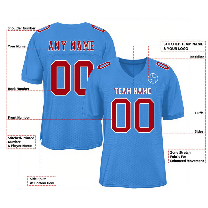 Custom Powder Blue Red-White Mesh Classic Style Authentic Sports Football Jersey