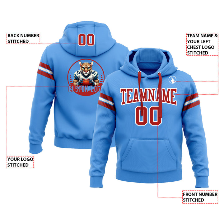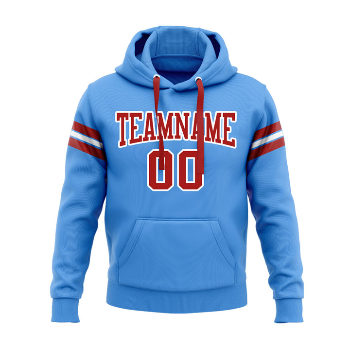 Custom Powder Blue Red-White Personalized Sports Team Embroidered Pullover Hoodie
