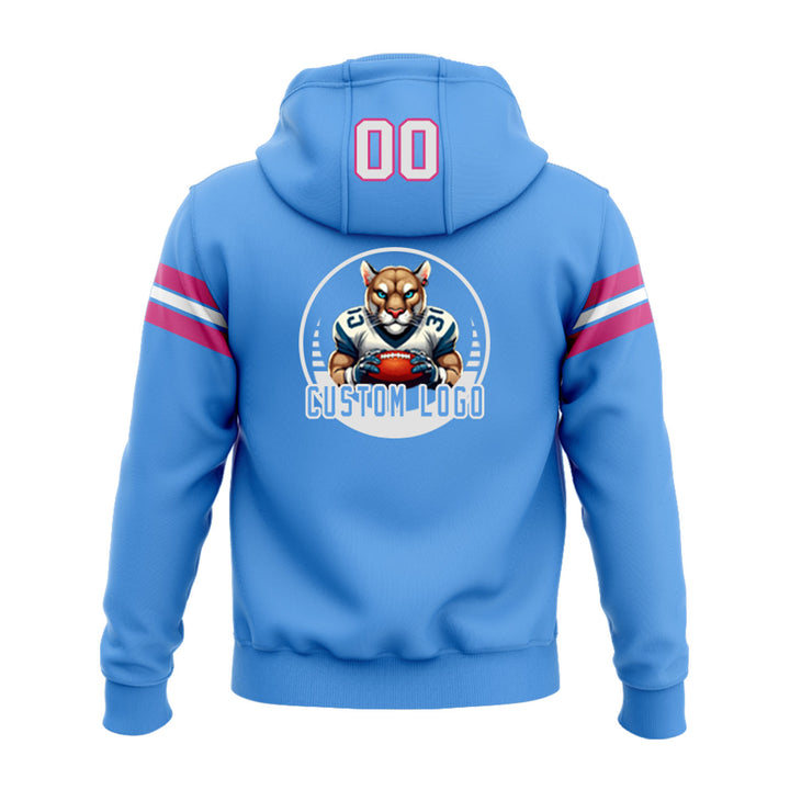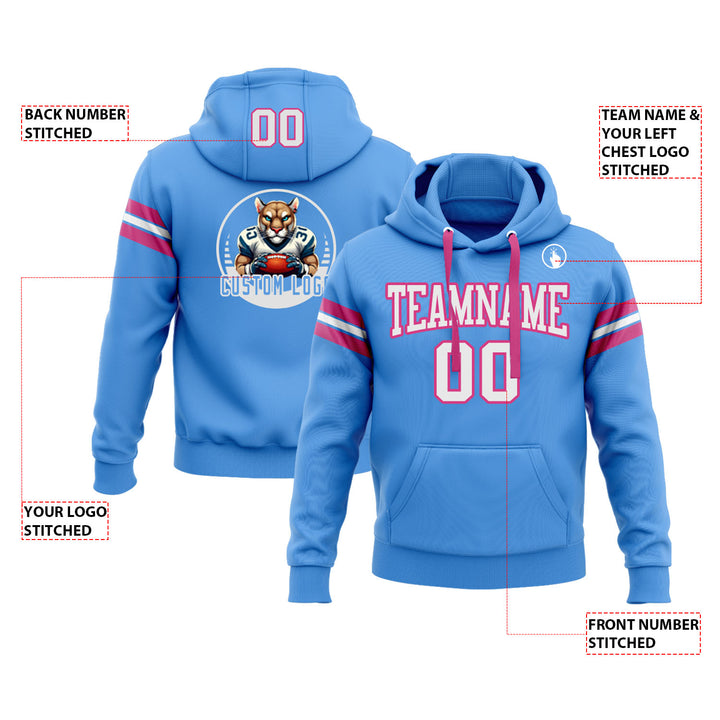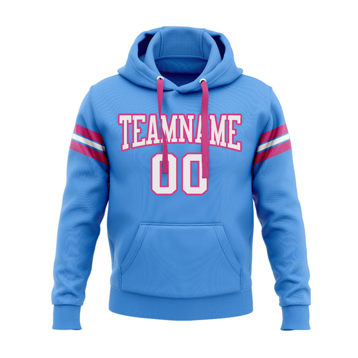 Custom Powder Blue White-Pink Personalized Sports Team Embroidered Pullover Hoodie