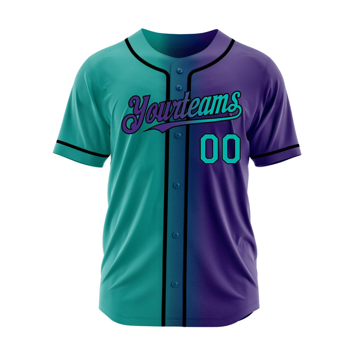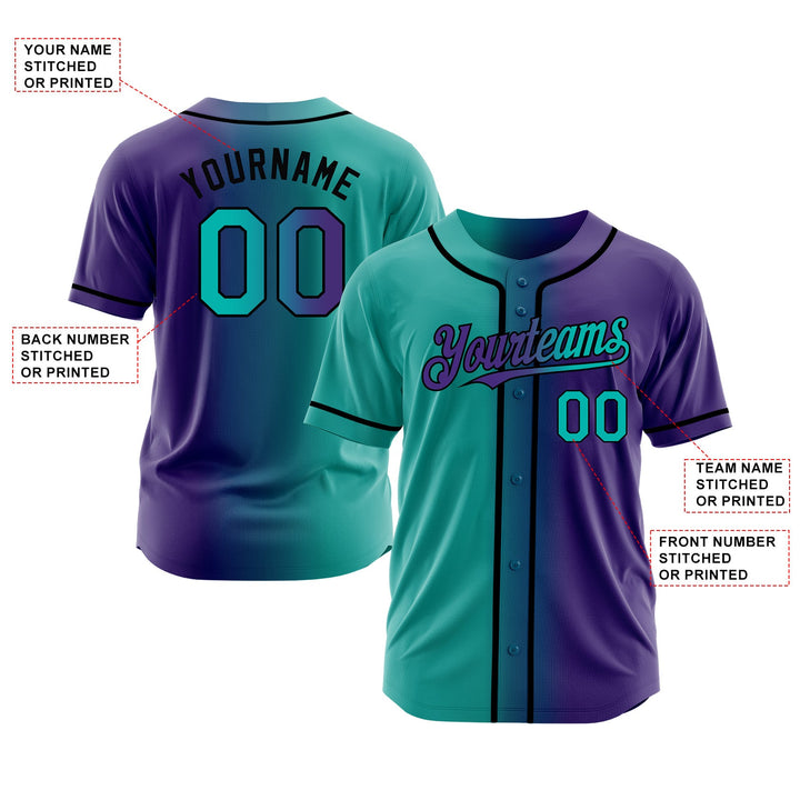 Custom Purple Aqua-Black Gradient Fashion Classic Style Authentic Sports Baseball Jersey