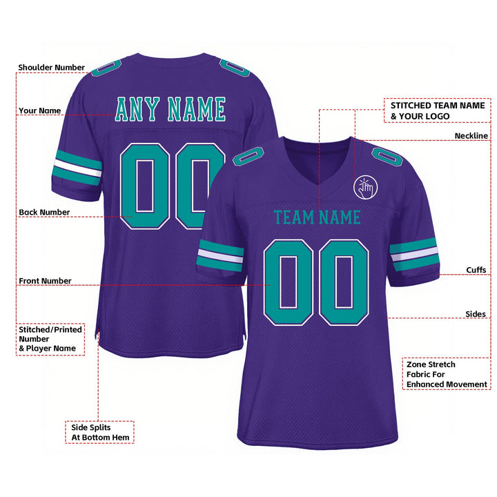 Custom Purple Aqua-White Mesh Classic Style Authentic Sports Football Jersey