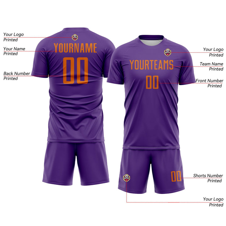 Custom Purple Bay Orange Classic Uniform Training Sets Soccer Jersey For Adults/Kids
