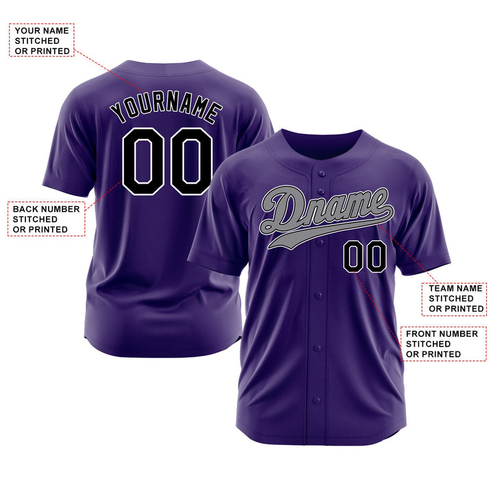 Custom Purple Black-Gray Classic Style Authentic Sports Baseball Jersey