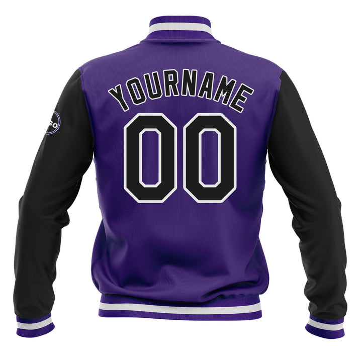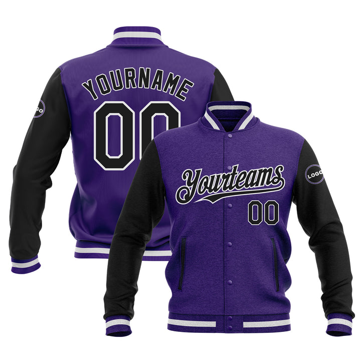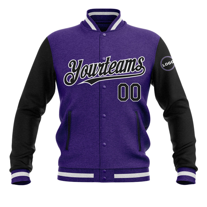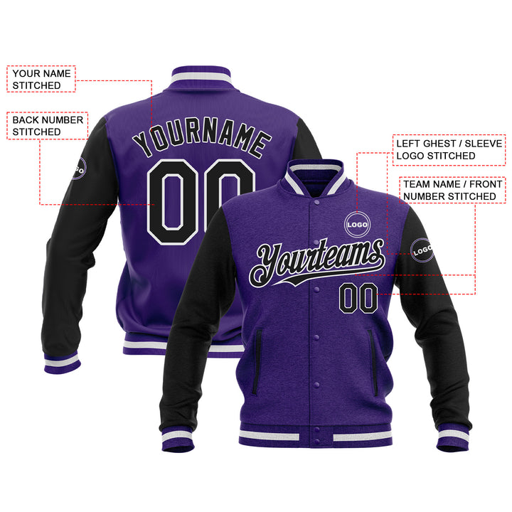 Custom Purple Black-White Classic Style Bomber Varsity Letterman Embroidered Jacket