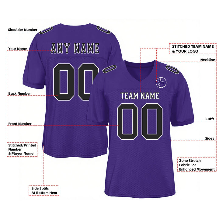 Custom Purple Black-White Mesh Classic Style Authentic Sports Football Jersey