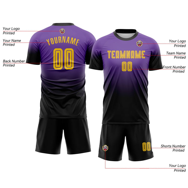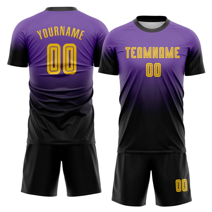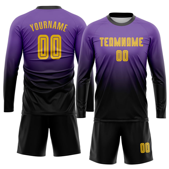 Custom Purple Gold-Black Long Sleeve Fade Fashion Classic Uniform Training Sets Soccer Jersey For Adults/Kids