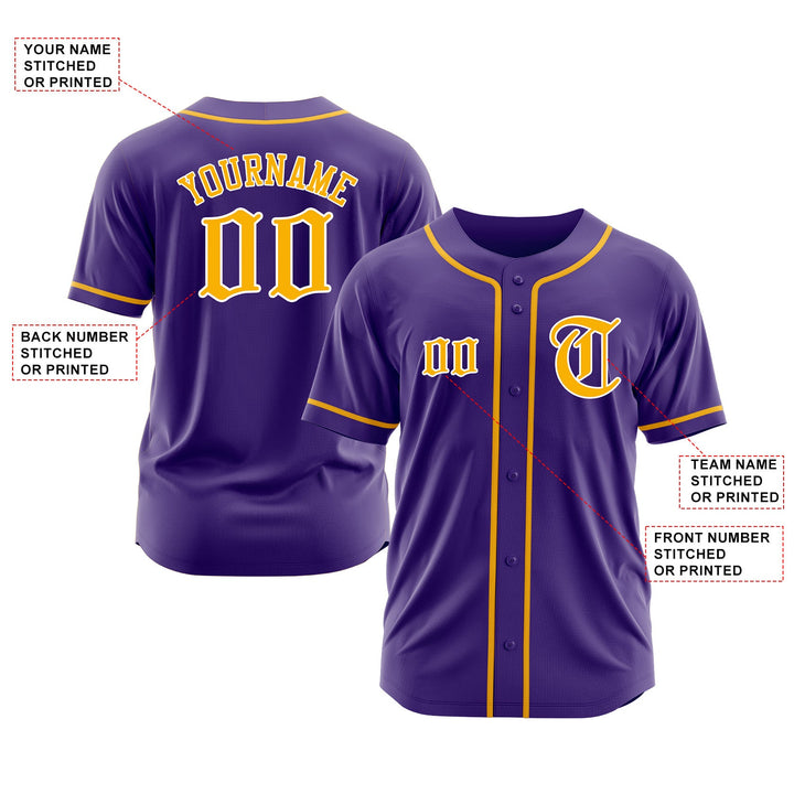 Custom Purple Gold-White Classic Style Authentic Sports Baseball Jersey