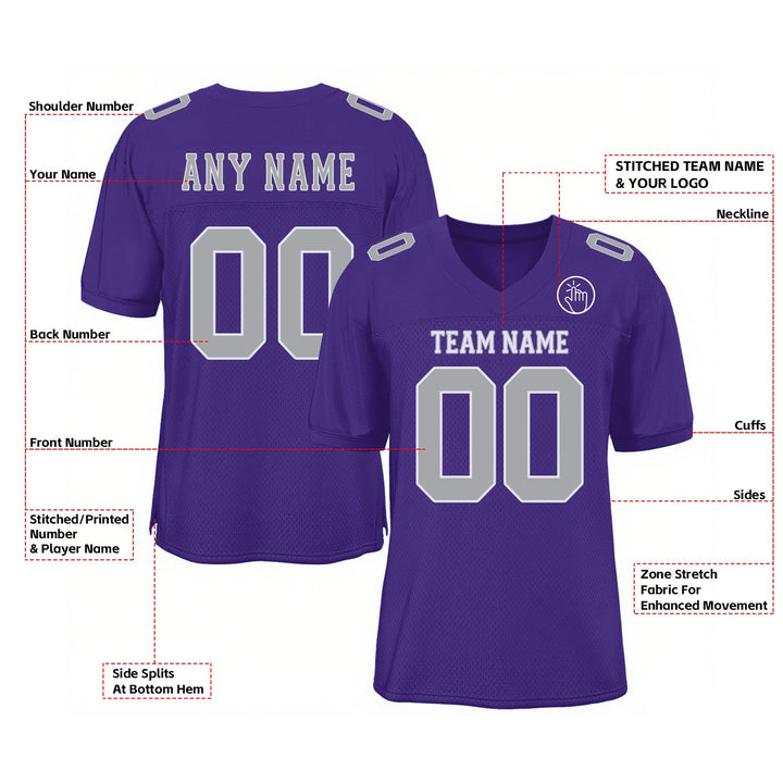 Custom Purple Gray-White Mesh Classic Style Authentic Sports Football Jersey
