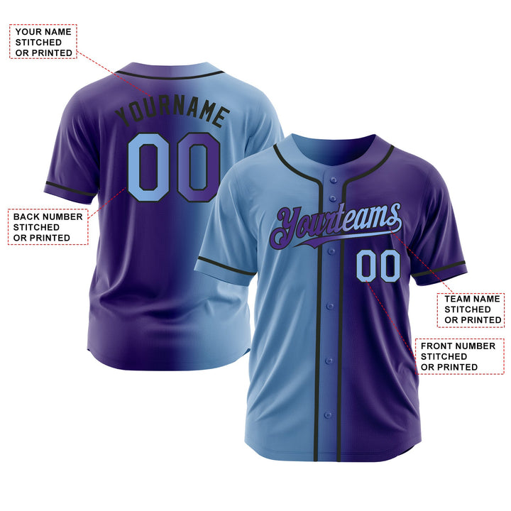 Custom Purple Light Blue-Black Gradient Fashion Classic Style Authentic Sports Baseball Jersey