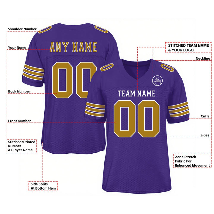 Custom Purple Old Gold-White Mesh Classic Style Authentic Sports Football Jersey