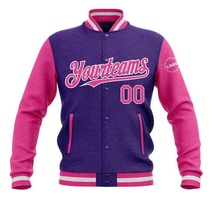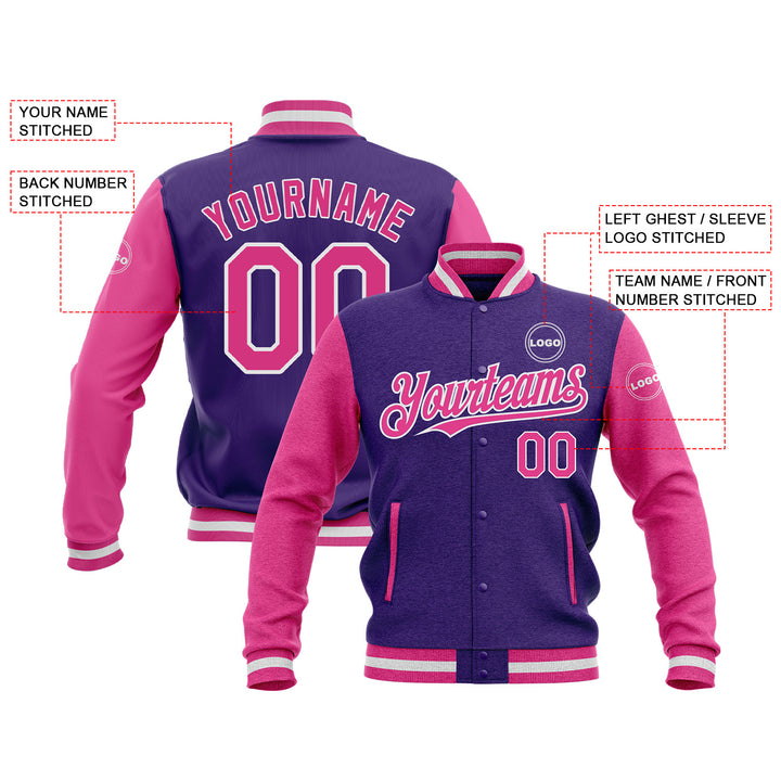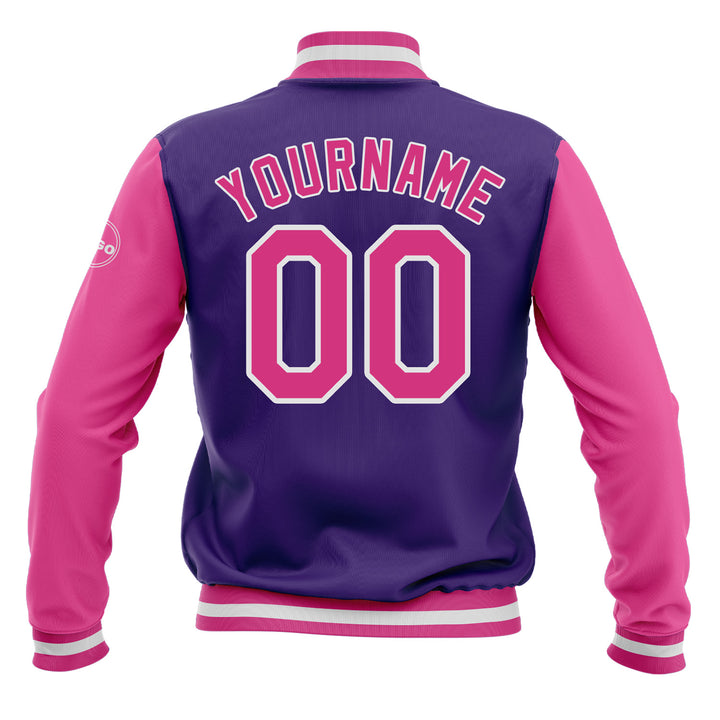 Custom Purple Pink-White Classic Style Two Tone Bomber Varsity Letterman Embroidered Jacket