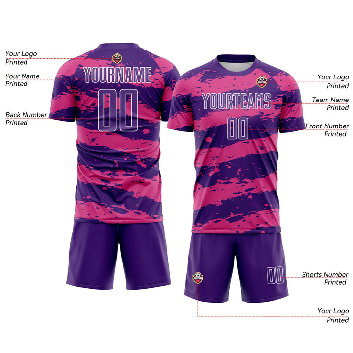 Custom Purple Pink-White Splash Classic Uniform Training Sets Soccer Jersey For Adults/Kids