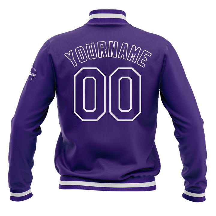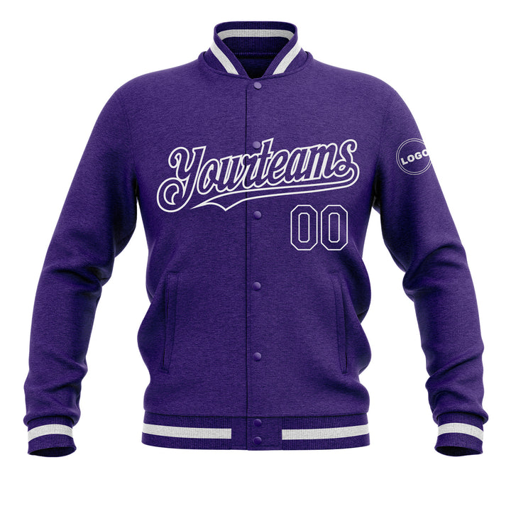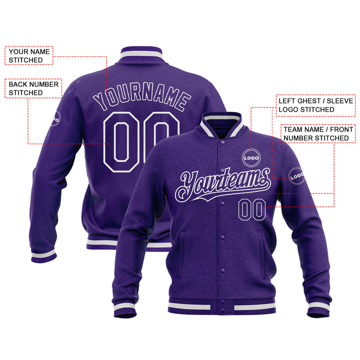 Custom Purple Purple-White Classic Style Bomber Varsity Letterman Embroidered Jacket