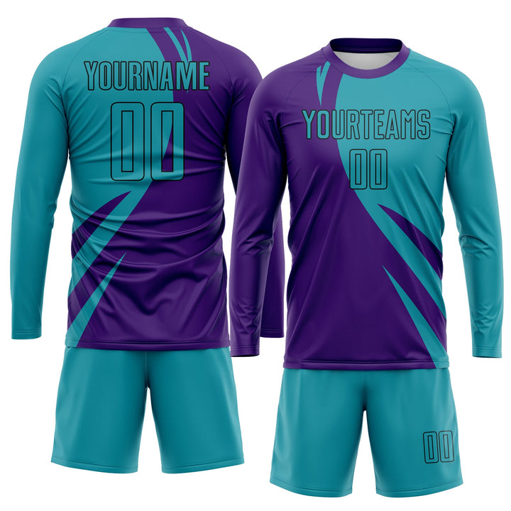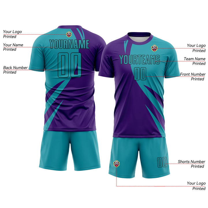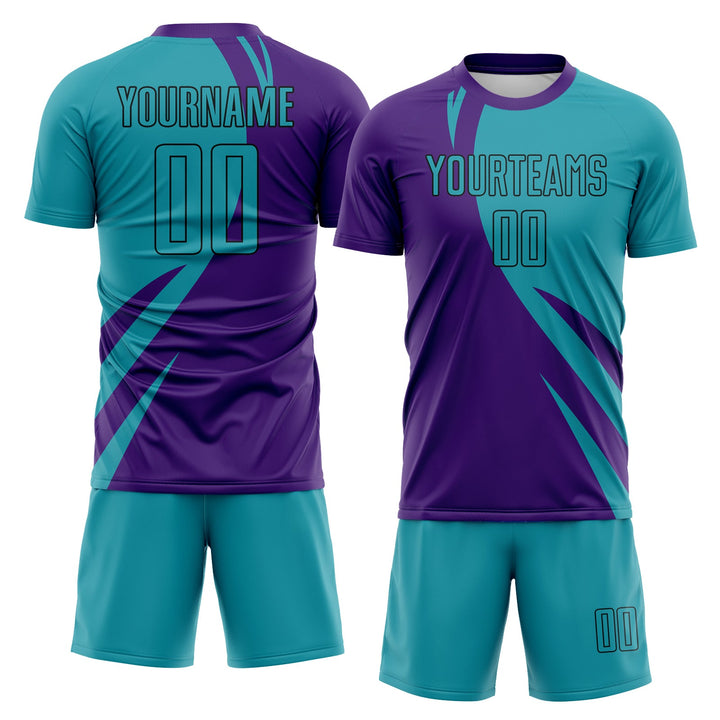 Custom Purple Teal-Black Curve Lines Classic Uniform Training Sets Soccer Jersey For Adults/Kids