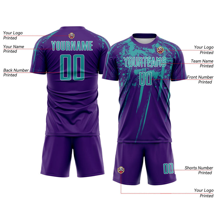 Custom Purple Teal-White Classic Uniform Training Sets Soccer Jersey For Adults/Kids