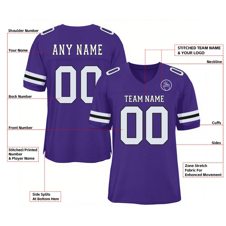 Custom Purple White-Black Mesh Classic Style Authentic Sports Football Jersey
