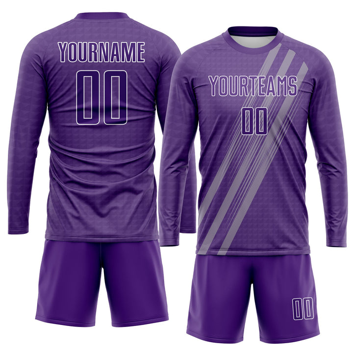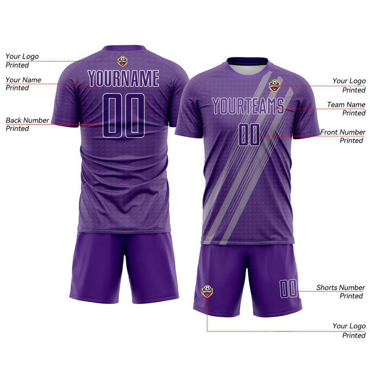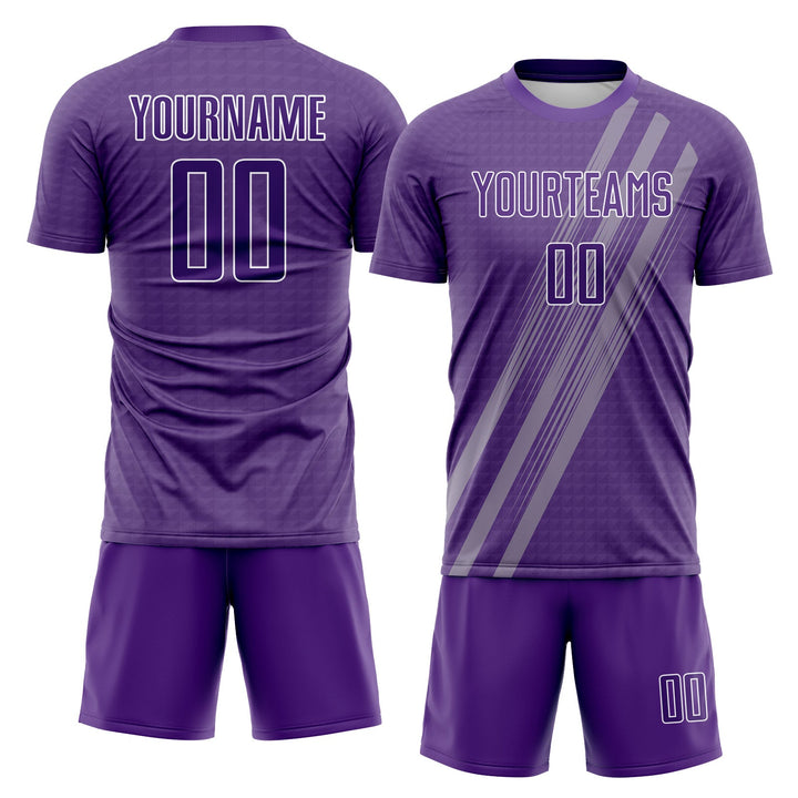 Custom Purple White Diagonal Lines Classic Uniform Training Sets Soccer Jersey For Adults/Kids