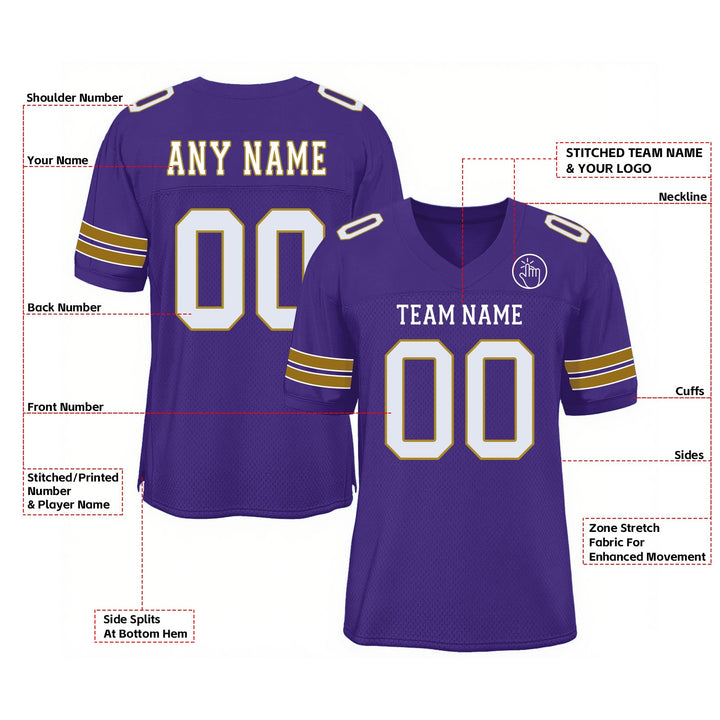 Custom Purple White-Old Gold Mesh Classic Style Authentic Sports Football Jersey