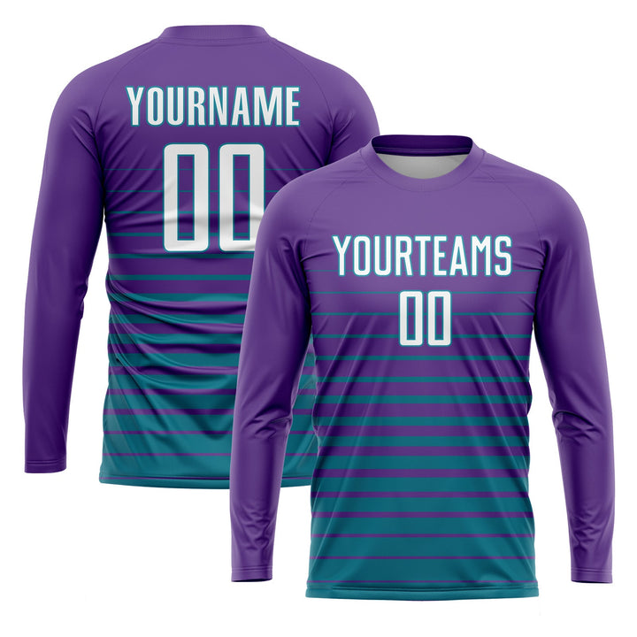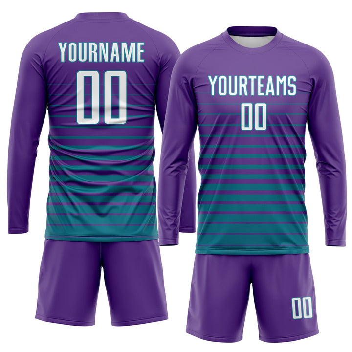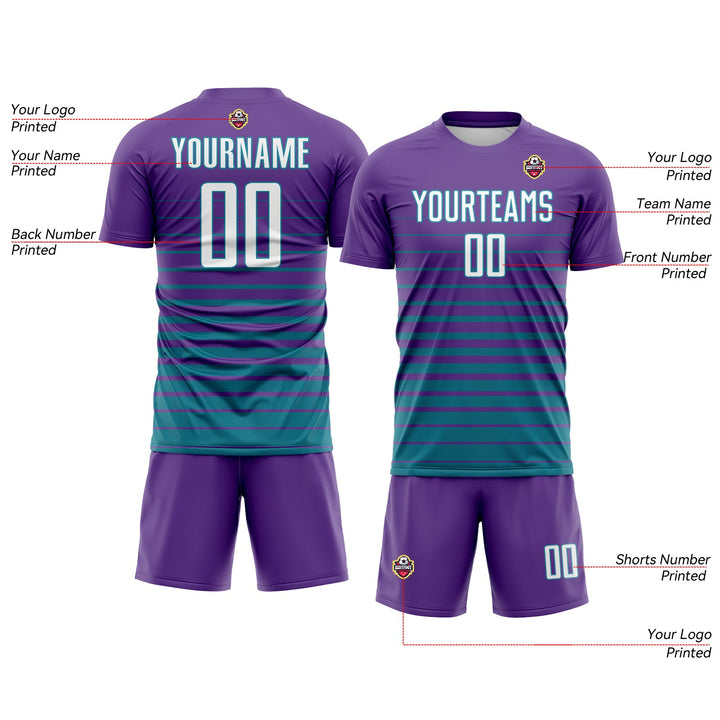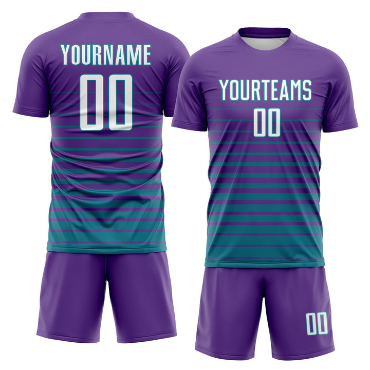 Custom Purple White-Teal Pinstripe Fade Fashion Classic Uniform Training Sets Soccer Jersey For Adults/Kids