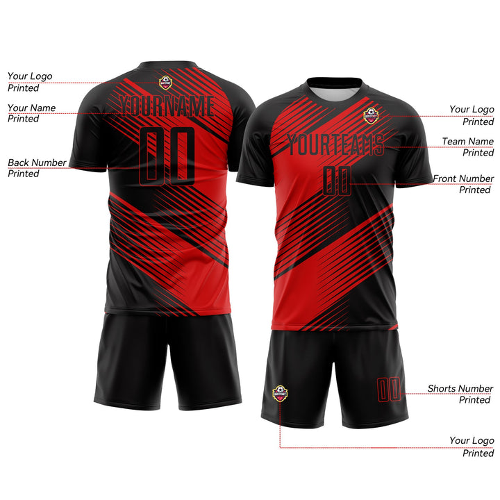Custom Red Black Classic Uniform Training Sets Soccer Jersey For Adults/Kids