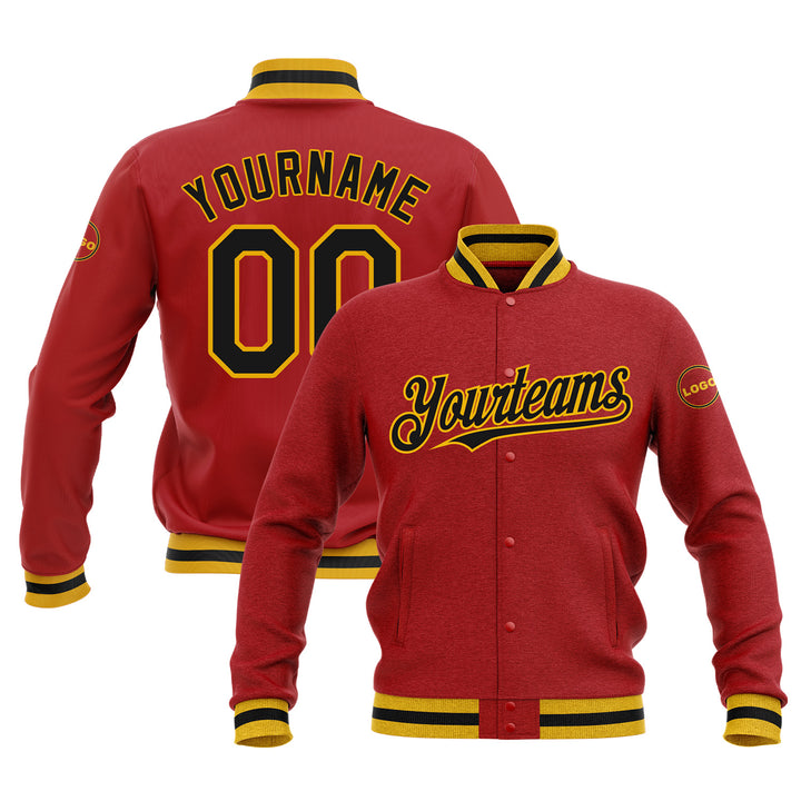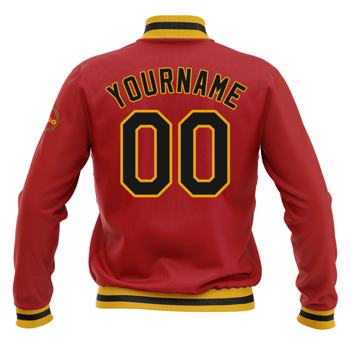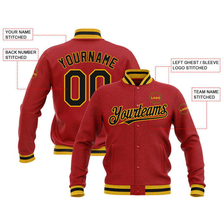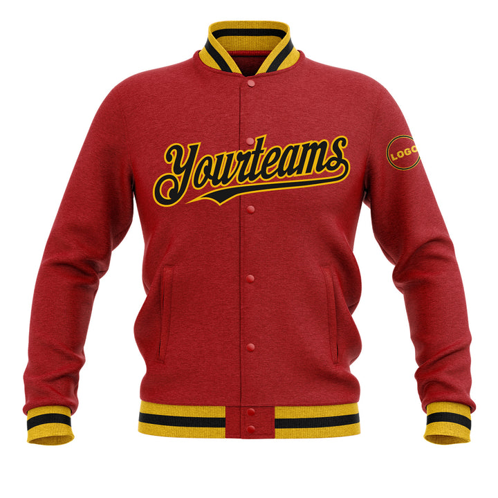 Custom Red Black-Gold Bomber Varsity Letterman Embroidered Jacket