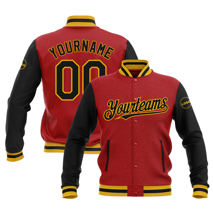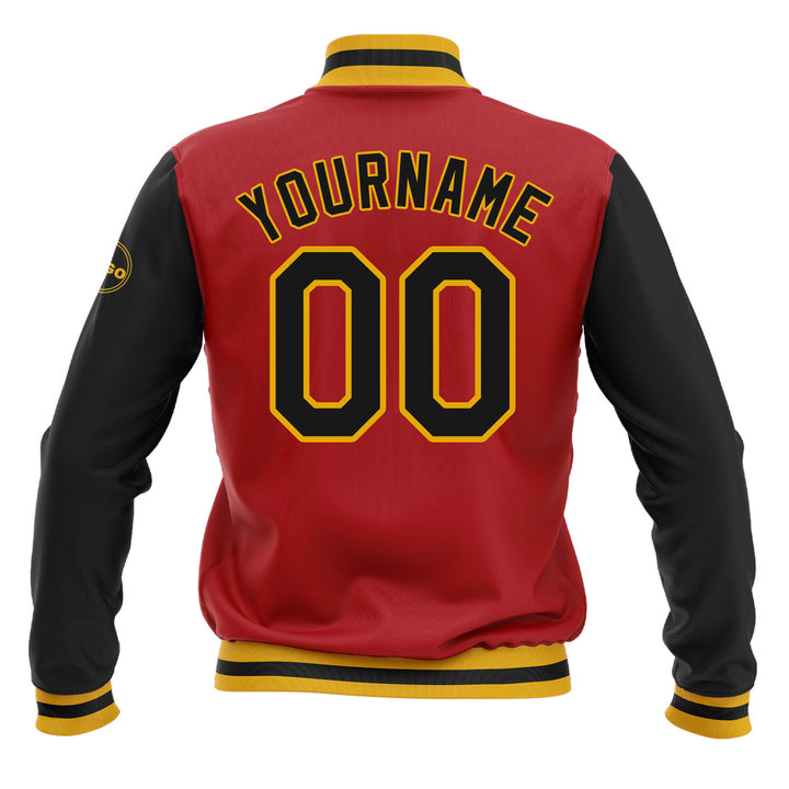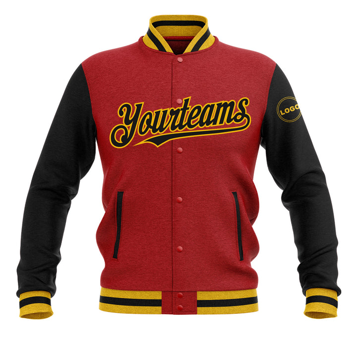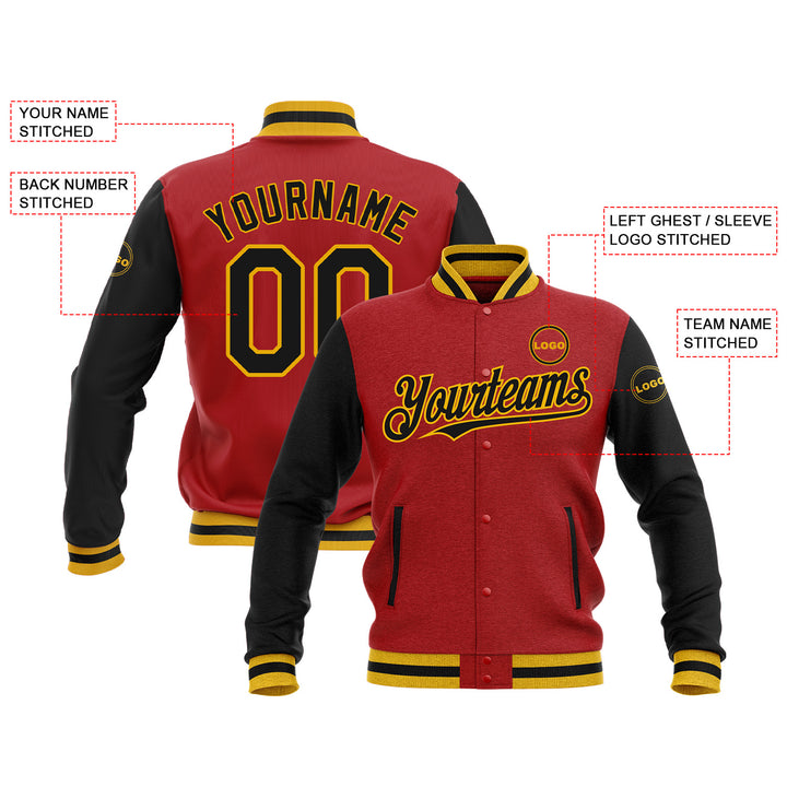 Custom Red Black-Gold Two Tone Bomber Varsity Letterman Embroidered Jacket