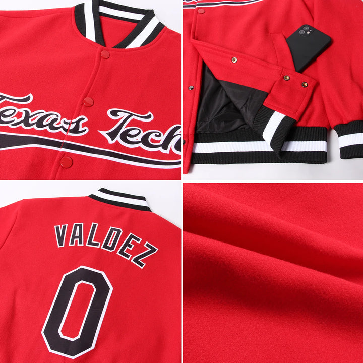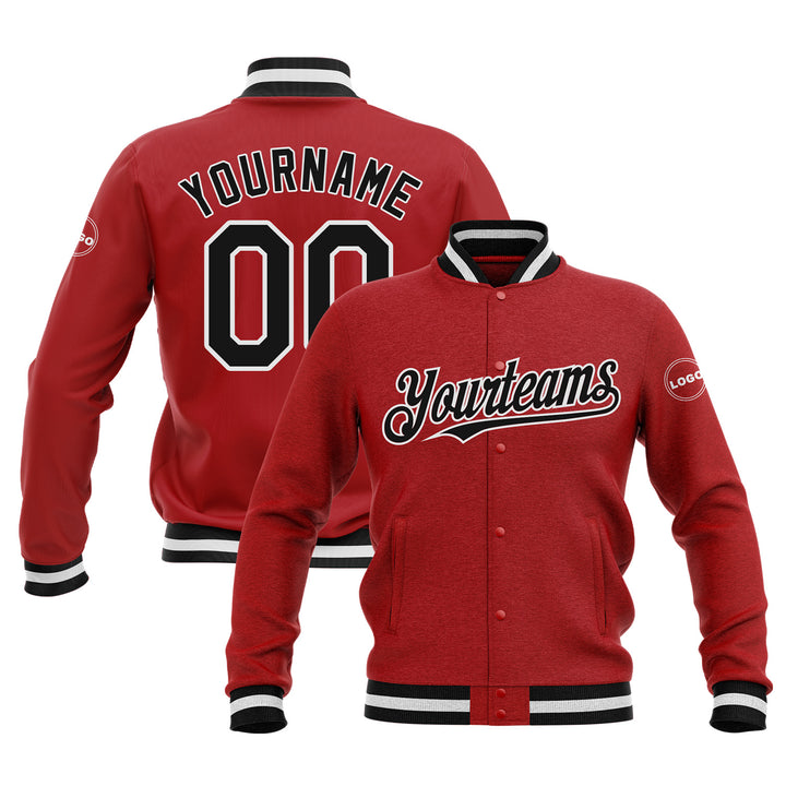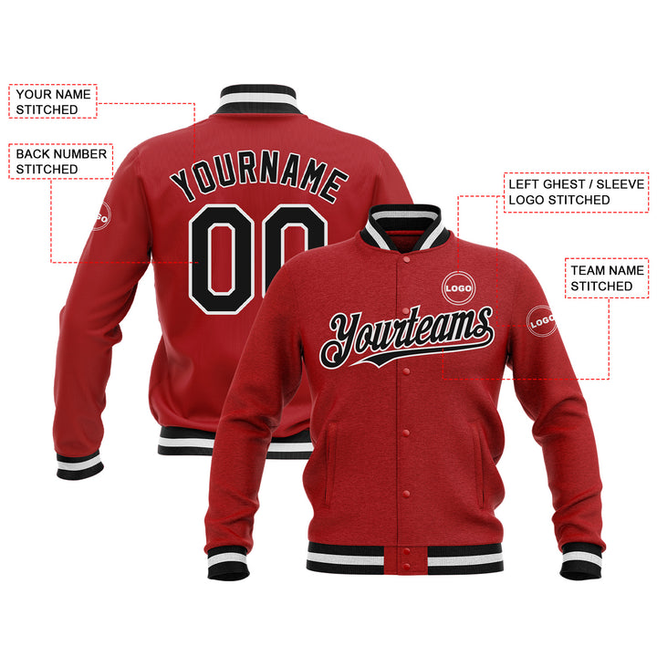 Custom Red Black-White Bomber Varsity Letterman Embroidered Jacket