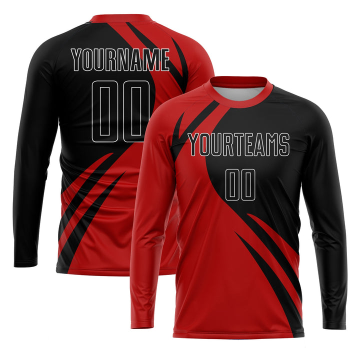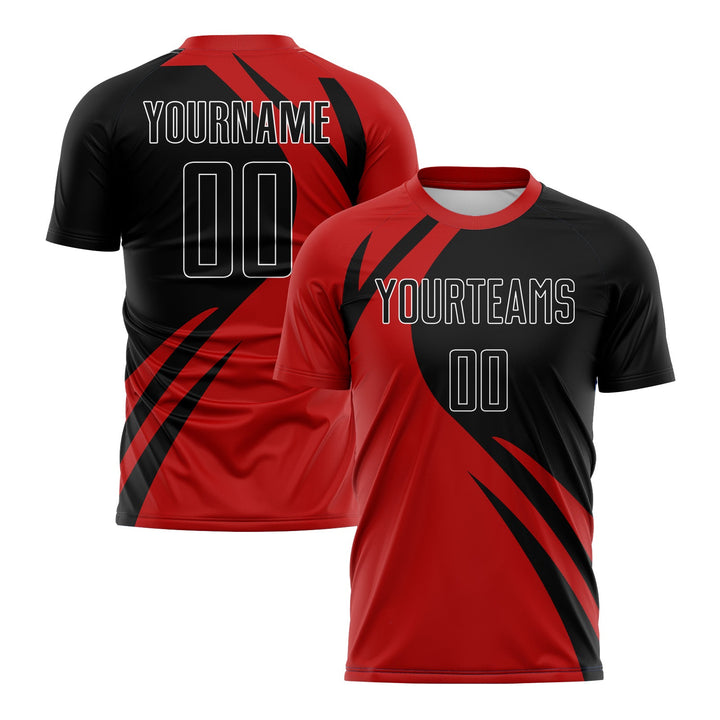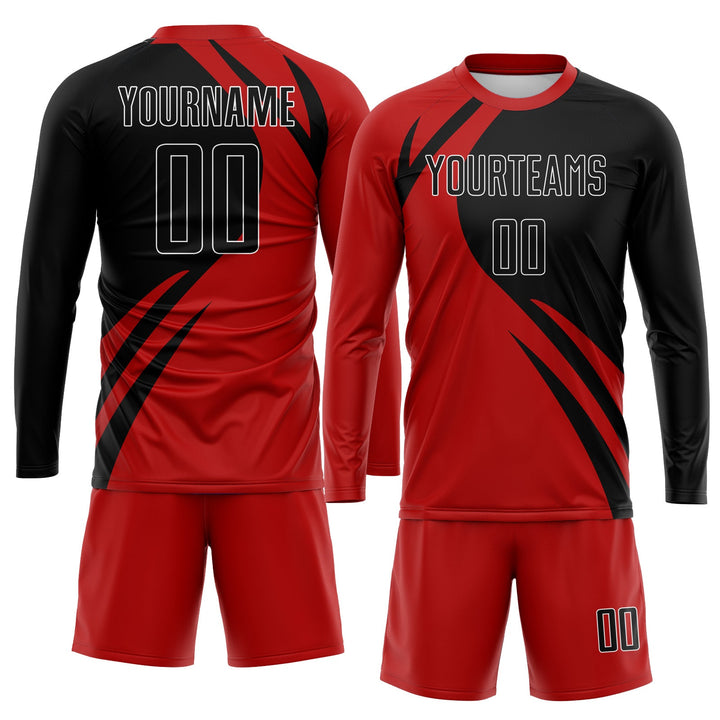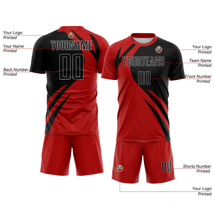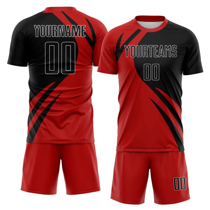 Custom Red Black-White Curve Lines Classic Uniform Training Sets Soccer Jersey For Adults/Kids