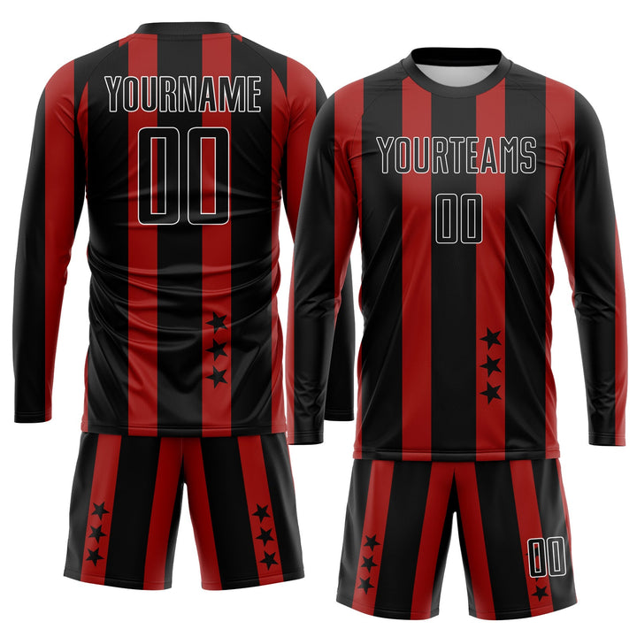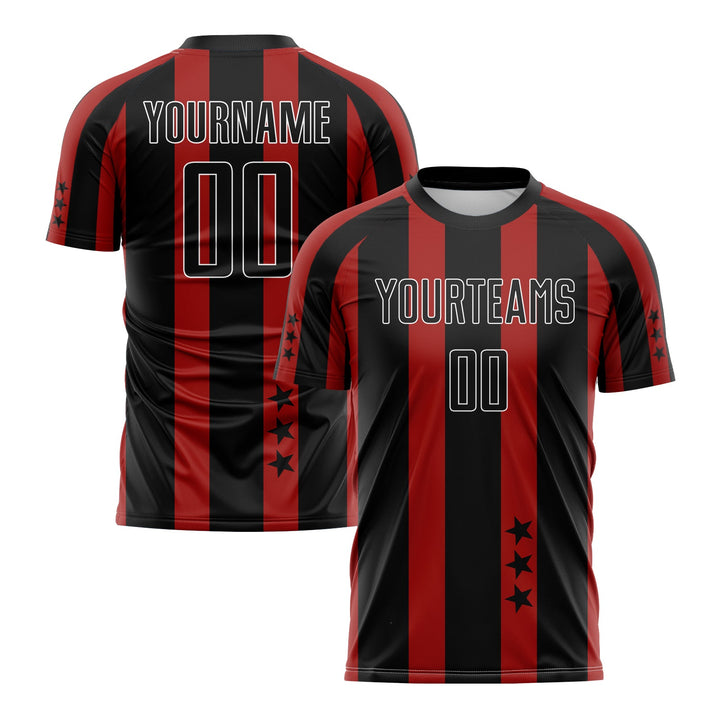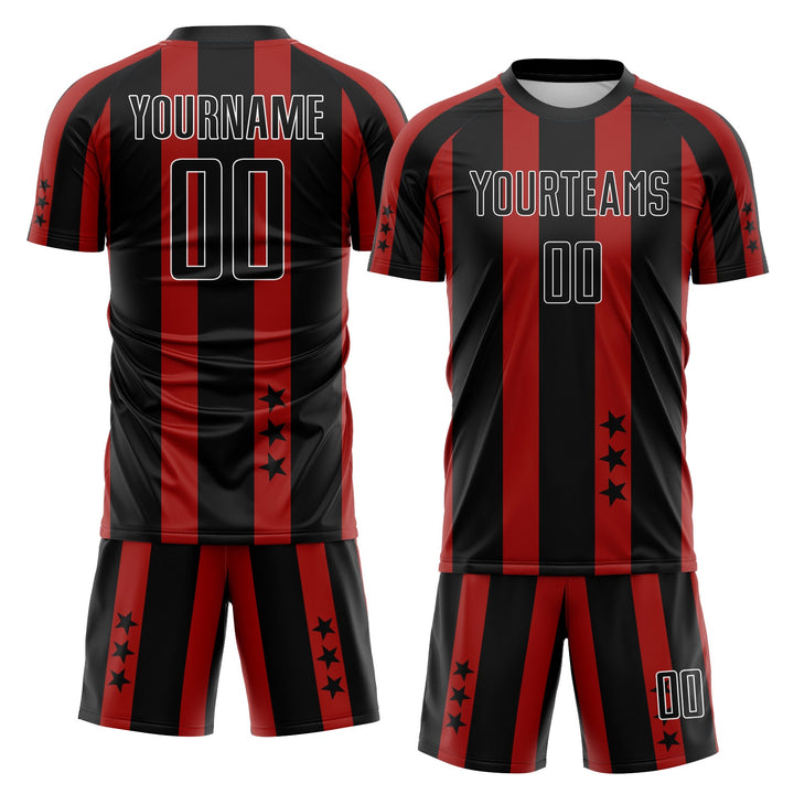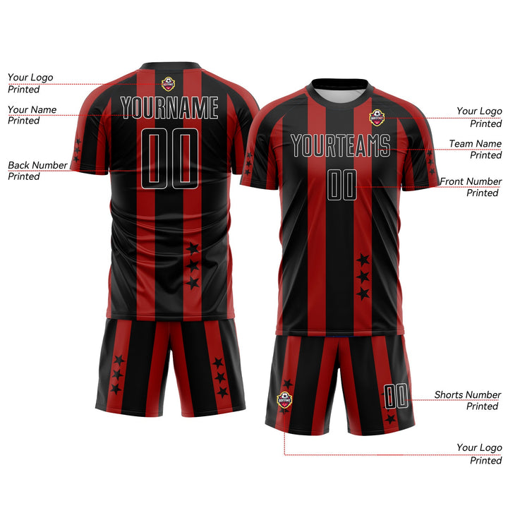 Custom Red Black-White Stars And Squares Classic Uniform Training Sets Soccer Jersey For Adults/Kids