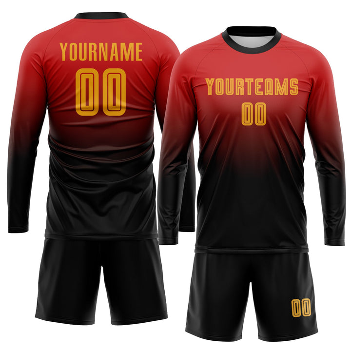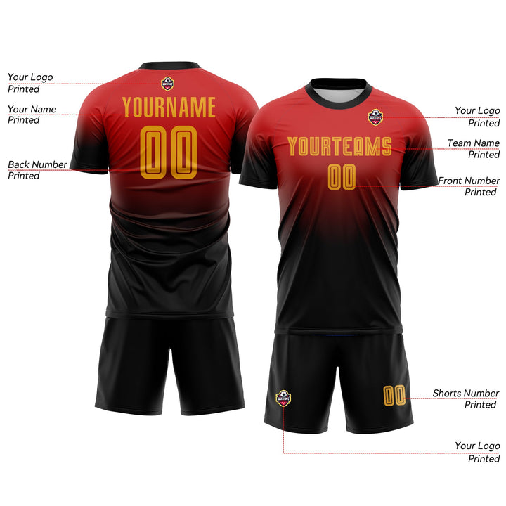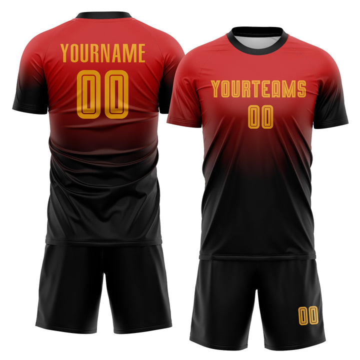 Custom Red Gold-Black Fade Fashion Classic Uniform Training Sets Soccer Jersey For Adults/Kids